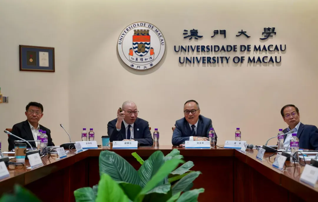 在澳門(mén)大學(xué),深圳先進(jìn)院代表團(tuán)與校長(zhǎng)宋永華、副校長(zhǎng)葛偉等校領(lǐng)導(dǎo)進(jìn)行了深入交流。宋永華對(duì)代表團(tuán)的到訪(fǎng)表示歡迎并介紹了澳門(mén)大學(xué)的整體情況和未來(lái)發(fā)展規(guī)劃。他表示,澳門(mén)大學(xué)目前已有15個(gè)學(xué)科進(jìn)入ESI全球前1%,2023年正式加入C9高校聯(lián)盟,顯示出其在前沿學(xué)科建設(shè)、國(guó)際合作、科研產(chǎn)出及人才培養(yǎng)方面的綜合實(shí)力,期待與深圳先進(jìn)院深化合作,共同服務(wù)國(guó)家科技戰(zhàn)略需求。劉陳立表示澳門(mén)大學(xué)近年來(lái)的快速發(fā)展令人矚目,橫琴新校區(qū)的全面建設(shè)為深澳科技合作提供了嶄新機(jī)遇。雙方一致認(rèn)為要以粵港澳大灣區(qū)為平臺(tái),推動(dòng)跨域資源整合,打造國(guó)際化創(chuàng)新生態(tài)。
