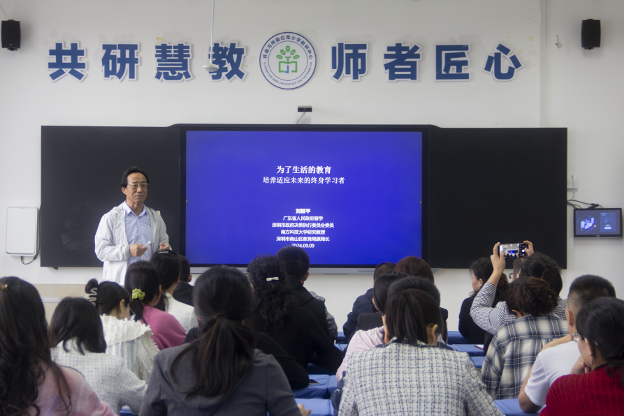 科學(xué)課示范、教師座談交流會(huì),為隴東革命老區(qū)教師成長賦能。活動(dòng)邀請(qǐng)到廣東省人民政府督學(xué)、南山區(qū)教育局原局長劉根平通過座談與慶陽教師近距離交流,進(jìn)一步激發(fā)教師的內(nèi)生動(dòng)力;同時(shí),深圳科學(xué)教師從教學(xué)設(shè)計(jì)、教學(xué)組織等科學(xué)教學(xué)能力角度,為慶陽教師提供了創(chuàng)新思路及實(shí)踐示范,助力當(dāng)?shù)亟處熽?duì)伍建設(shè)。