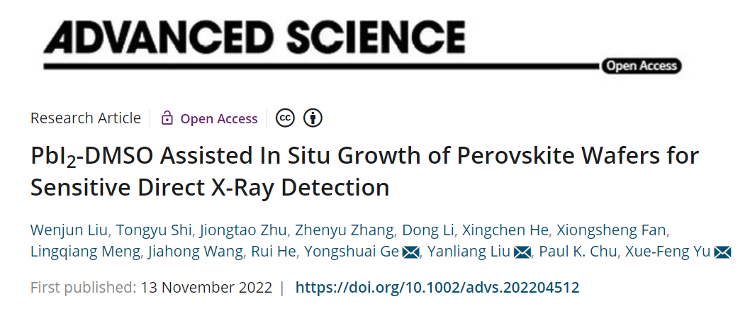 Advanced Science | 原位生長(zhǎng)鈣鈦礦晶片實(shí)現(xiàn)低劑量直接X(jué)射線(xiàn)探測(cè)成像