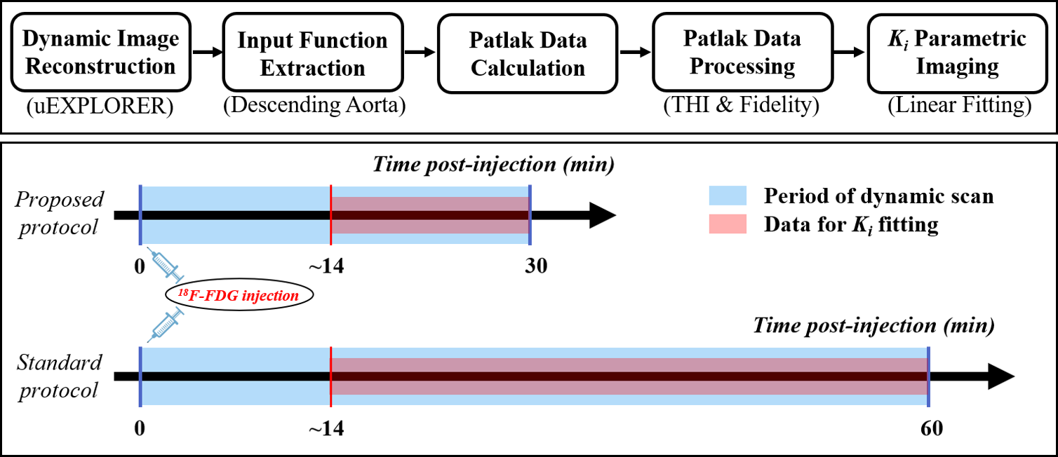 近日,中國科學(xué)院深圳先進(jìn)技術(shù)研究院·勞特伯生物醫(yī)學(xué)成像研究中心胡戰(zhàn)利研究員團(tuán)隊(duì)與相關(guān)合作醫(yī)院聯(lián)合攻關(guān),在動態(tài)PET定量成像領(lǐng)域先后取得多項(xiàng)研究進(jìn)展,團(tuán)隊(duì)圍繞提高動態(tài)PET臨床時(shí)空分辨率、縮短掃描時(shí)間開展一系列相關(guān)研究,實(shí)現(xiàn)了“從算法模型創(chuàng)新——到實(shí)際臨床驗(yàn)證”的科研思路。相關(guān)工作前期發(fā)表在技術(shù)類權(quán)威期刊IEEE Transactions on Biomedical Engineering(IF=4.7)和Medical Physics(IF=4.5)上,然后在合作醫(yī)院裝機(jī)的上海聯(lián)影2米PET/CT和一體化PET/MR設(shè)備上分別進(jìn)行臨床病人驗(yàn)證,相關(guān)工作發(fā)表在核醫(yī)學(xué)臨床頂刊European Journal of Nuclear Medicine and Molecular Imaging(IF=10.057)和European Radiology(IF=7.034)上。