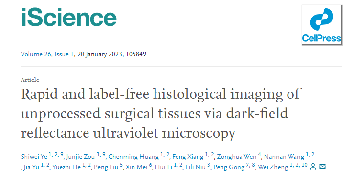 近日,中國科學(xué)院深圳先進(jìn)技術(shù)研究院鄭煒研究員團(tuán)隊在iScience上發(fā)表了題為“Rapid and label-free histological imaging of unprocessed surgical tissues via Dark-field Reflectance Ultraviolet Microscopy”的文章,報道了一種可用于術(shù)中病理評估的快速病理組織成像方法。