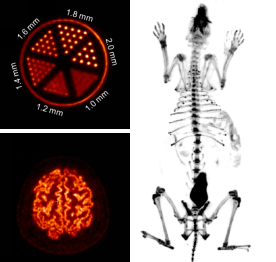 SIAT bPET獲得的Derenzo模體圖、人腦FDG代謝圖和兔子NaF骨掃描圖