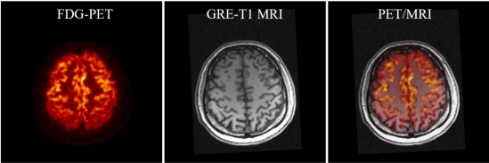 SIAT bPET和聯(lián)影uMR790 3T磁共振成像系統(tǒng)上同時獲得的人腦PET/MRI圖像