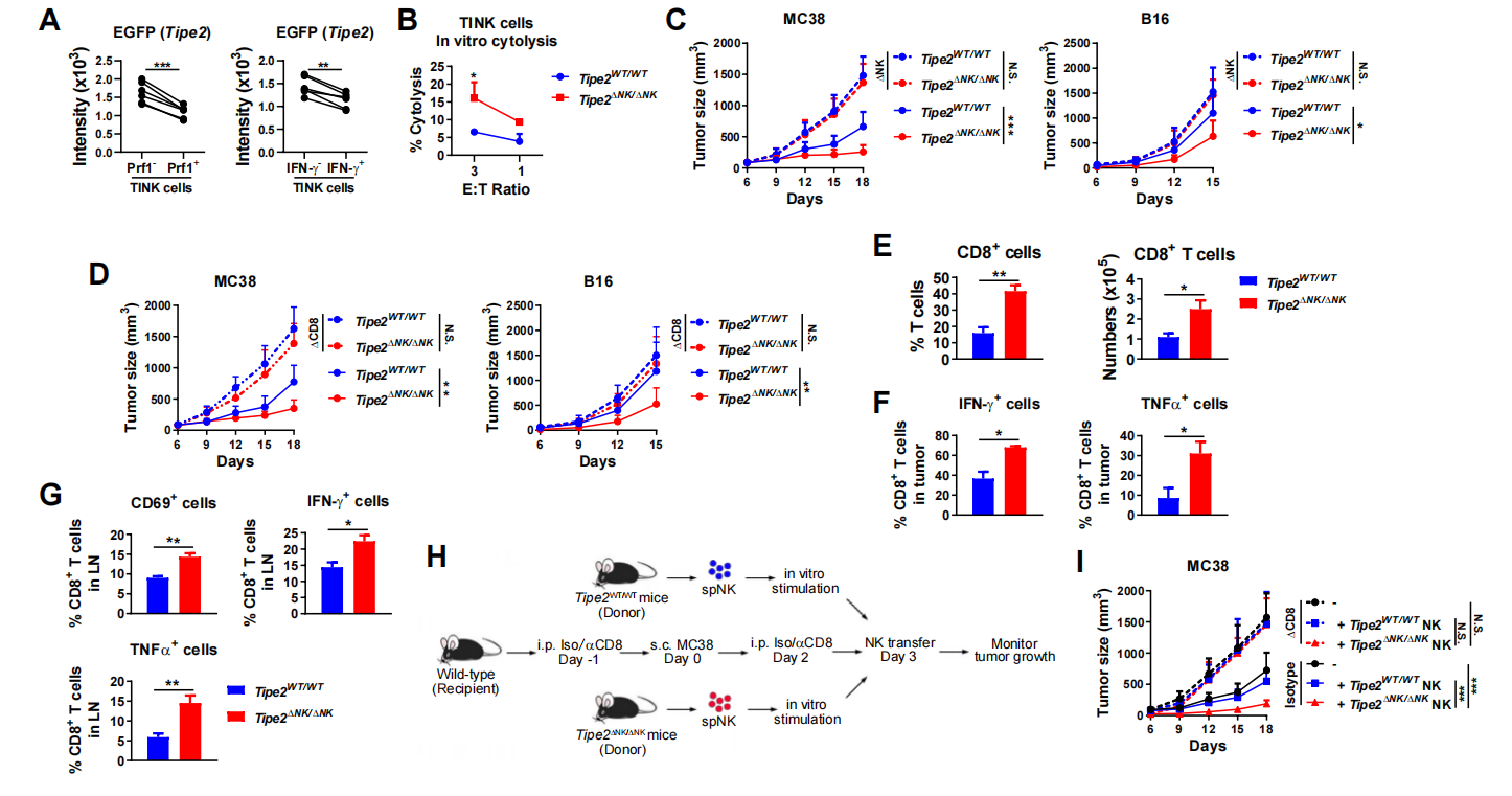 圖2. NK細(xì)胞敲除Tipe2后促進(jìn)抗腫瘤CD8+T細(xì)胞應(yīng)答