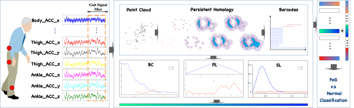 圖1:研究團(tuán)隊(duì)提出的傳感拓?fù)浞蔷€性特征分析框架和凍結(jié)步態(tài)檢測(cè)方法