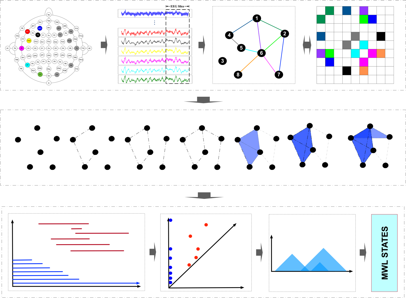 圖3:研究團(tuán)隊(duì)提出的基于腦電功能連接網(wǎng)絡(luò)拓?fù)涮卣鞯哪X負(fù)荷分析方法