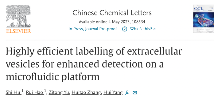 近日,中國科學(xué)院深圳先進(jìn)技術(shù)研究院楊慧研究員團(tuán)隊(duì)在化學(xué)綜合性學(xué)術(shù)期刊《中國化學(xué)快報(bào)》(Chinese Chemical Letters)上發(fā)表了最新研究成果??蒲袌F(tuán)隊(duì)提出了一種基于微納流控平臺的細(xì)胞外囊泡熒光標(biāo)記新策略,以實(shí)現(xiàn)細(xì)胞外囊泡的精確測量和熒光成像。