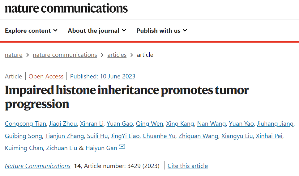 Nature Communications|親代組蛋白遺傳受損促進(jìn)腫瘤進(jìn)展