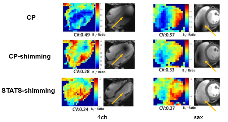 圖2 利用新型統(tǒng)計初值的射頻勻場算法, 顯著提高心臟成像自適應(yīng)激發(fā)的穩(wěn)定性。