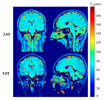 圖3首次在5.0 T MR平臺上測試了大腦T1ρ功能成像。