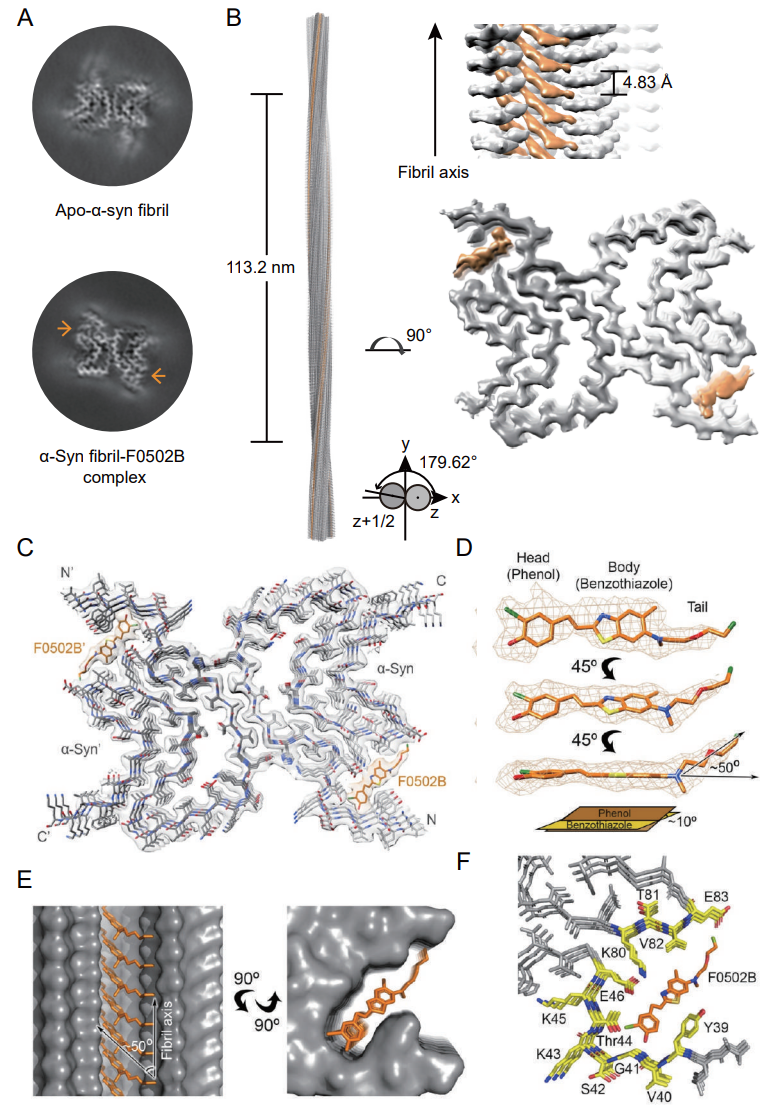 F0502B結(jié)合α-Syn原纖維復(fù)合物的冷凍電鏡結(jié)構(gòu)