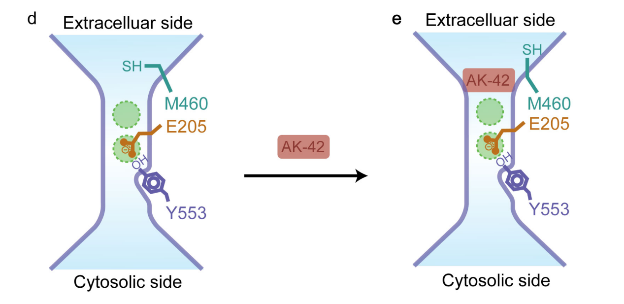 AK-42直接堵塞氯離子通道ClC-2的模型