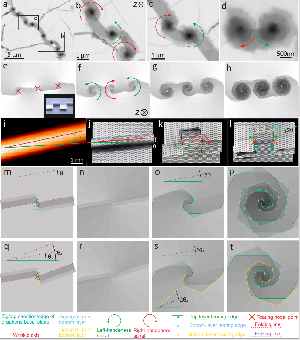 相關研究成果以“通過石墨烯螺旋的一維到二維的生長將手性轉(zhuǎn)化為轉(zhuǎn)角”(Conversion of Chirality to Twisting via 1D-to-2D Growth of Graphene Spirals)為題發(fā)表在國際知名期刊Nature Materials上。