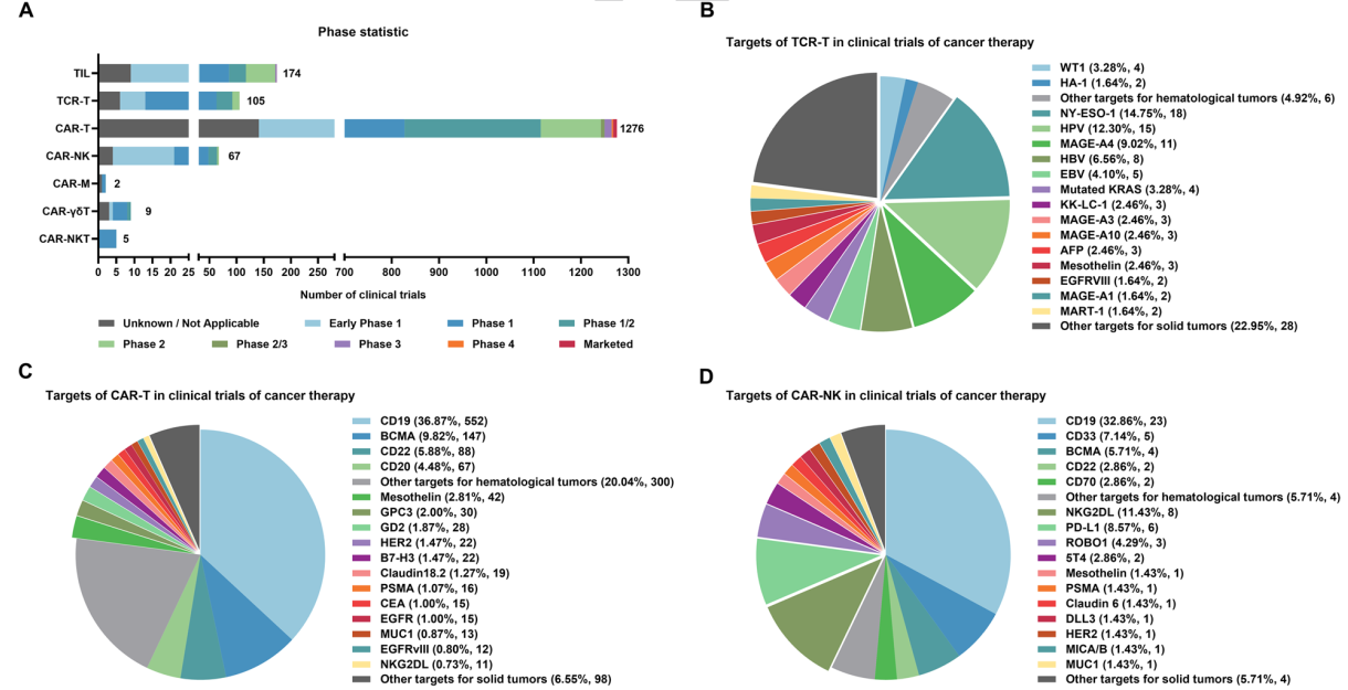 圖1. 常見ACT的臨床研究現(xiàn)狀及其靶點(diǎn)分布情況