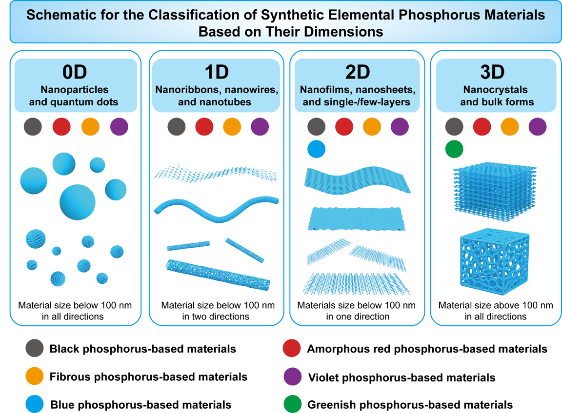 按照形貌維度分類的單質(zhì)磷材料結(jié)構(gòu)示意圖