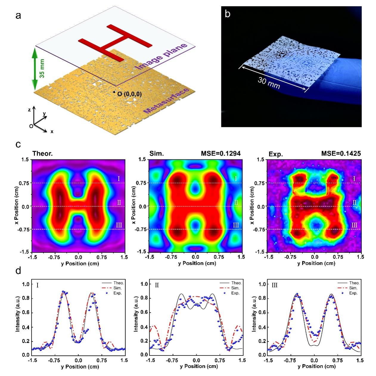 圖2:剪裁加工的非局域全息超透鏡及其復雜全息聲場