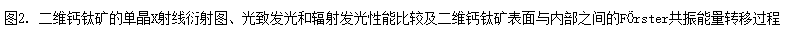 二維鈣鈦礦單晶和薄膜在以往的研究中已經有不少有關應變效應的報道,但是其結構起源等機理仍然不甚明了,而內在應變如何提升了二維鈣鈦礦的性能效果也尚未得到詳細的研究。本工作研究了一組具有良好量子和介電限域效應的二維鈣鈦礦單晶。通過采用掠入射X射線衍射測量,研究人員發(fā)現(xiàn)該晶體樣品表面存在壓縮應變的現(xiàn)象。進一步的X射線光電子能譜分析和理論計算表明,這一壓縮應變的結構起因源自表面胺基的缺失。瞬態(tài)光致發(fā)光光譜研究明確揭示了從表面到體相的快速能量轉移過程,為實現(xiàn)“自移波”和快速發(fā)光壽命奠定了基礎。