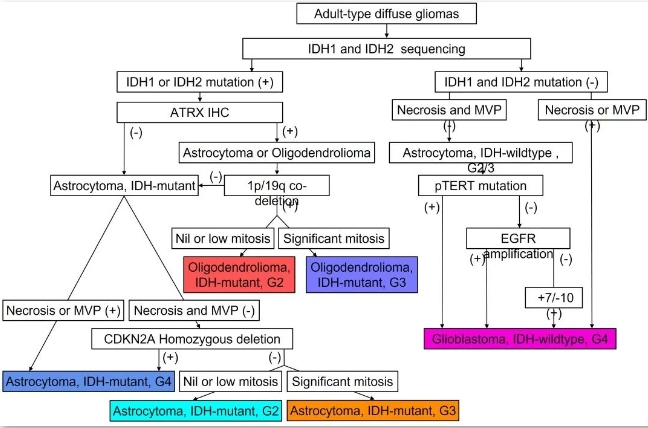 圖1. WHO第五版指南推薦的成人彌漫性腦膠質(zhì)瘤整合診斷流程