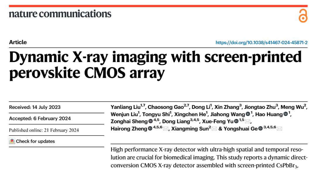 Nature Communications | 絲網(wǎng)印刷鈣鈦礦CMOS面陣探測器實(shí)現(xiàn)高性能動(dòng)態(tài)X射線成像