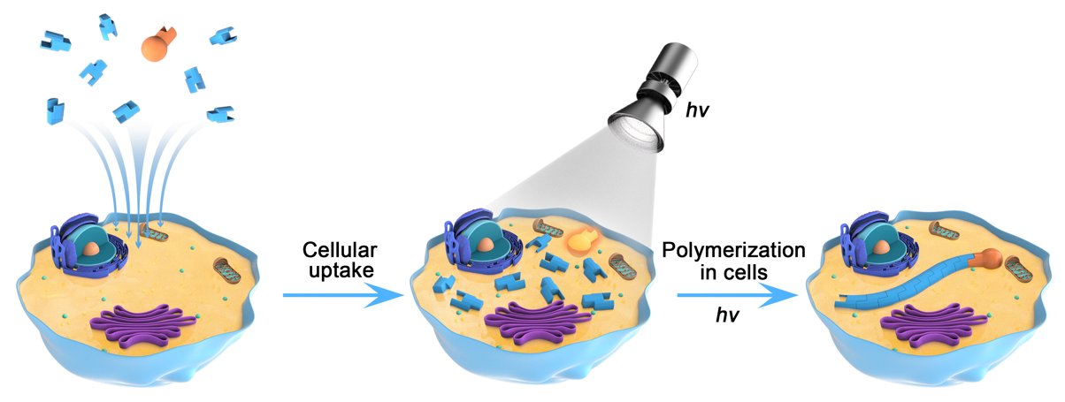 眾所周知,由于細胞內(nèi)化學(xué)環(huán)境高度復(fù)雜且細胞對外部刺激極為敏感,利用化學(xué)手段在活細胞內(nèi)實現(xiàn)分子結(jié)構(gòu)轉(zhuǎn)化,特別是大分子合成一直以來都較為困難。由于相關(guān)技術(shù)所限,對這些問題的探索目前僅處于起步階段。設(shè)計細胞內(nèi)原位合成大分子的方法在細胞生物學(xué)和醫(yī)學(xué)領(lǐng)域可以提供研究的新方法,具有潛力巨大的可能性。