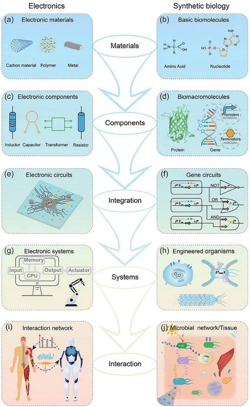 圖2 生物電子學(xué)與合成生物學(xué)的層級(jí)結(jié)構(gòu)