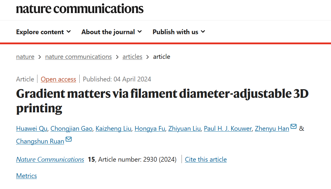 Nature Communications?|?變纖維直徑3D打印技術(shù)為器官仿生構(gòu)建提供新策略