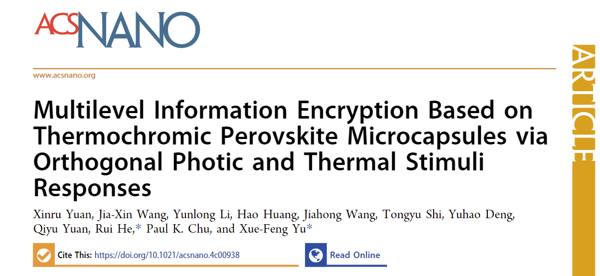 近日,中國(guó)科學(xué)院深圳先進(jìn)技術(shù)研究院材料所何睿、喻學(xué)鋒團(tuán)隊(duì)成功開發(fā)出一種可以對(duì)光和熱等多刺激進(jìn)行變色響應(yīng)的新型鈣鈦礦微膠囊材料,能夠有效提升信息加密等級(jí)和信息存儲(chǔ)密度,相關(guān)成果在納米領(lǐng)域國(guó)際權(quán)威期刊ACS Nano上發(fā)表題為“Multilevel Information Encryption Based on Thermochromic Perovskite Microcapsules via Orthogonal Photic and Thermal Stimuli Responses”的研究論文。