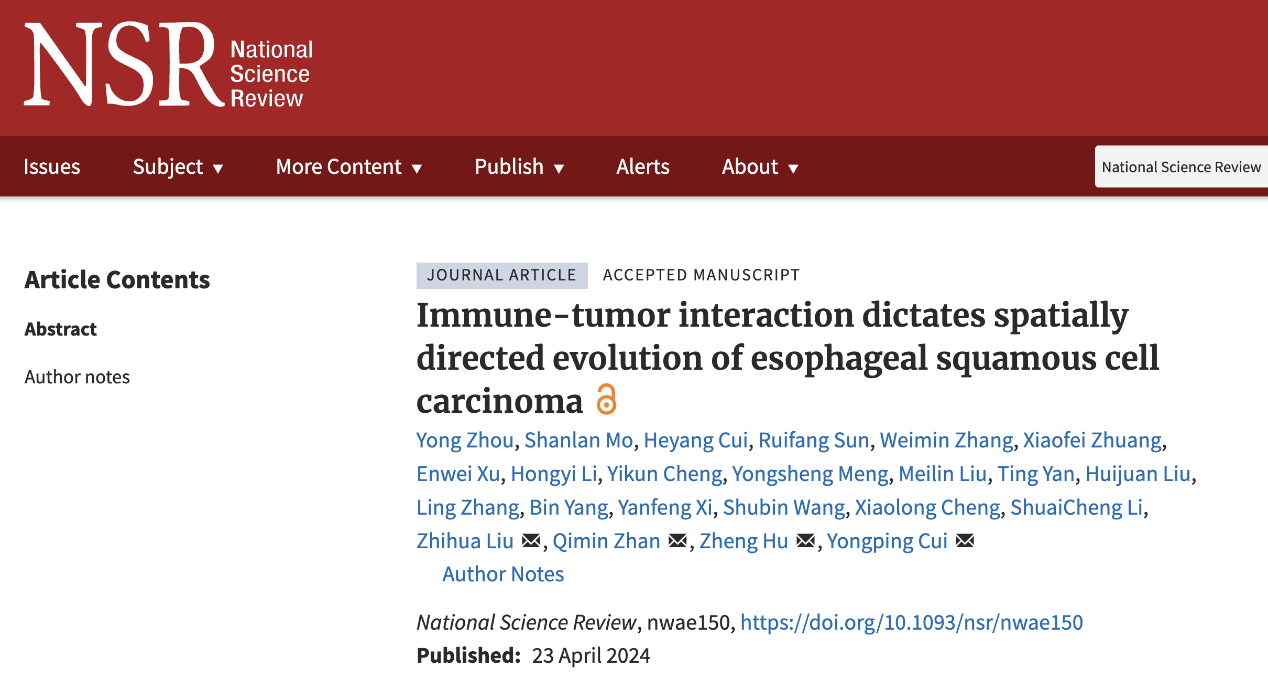 National Science Review | 免疫與腫瘤互作驅(qū)動(dòng)的食管鱗癌空間定向進(jìn)化