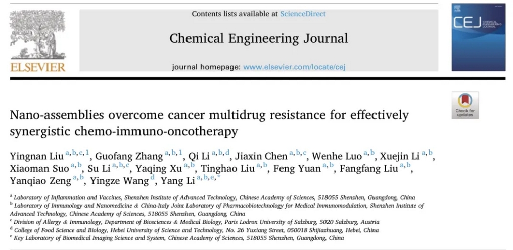 Chemical Engineering Journal | 新型納米組裝體為增強化療-免疫協(xié)同治療提出新策略