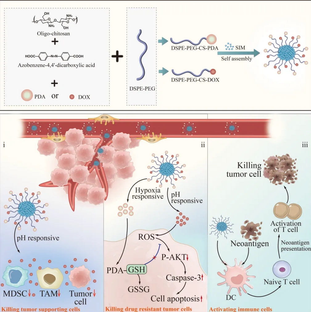 通過共同遞送及順序釋放DOX、PDA和SIM來克服化療藥物耐藥性以增強化療-免疫協(xié)同抗腫瘤治療