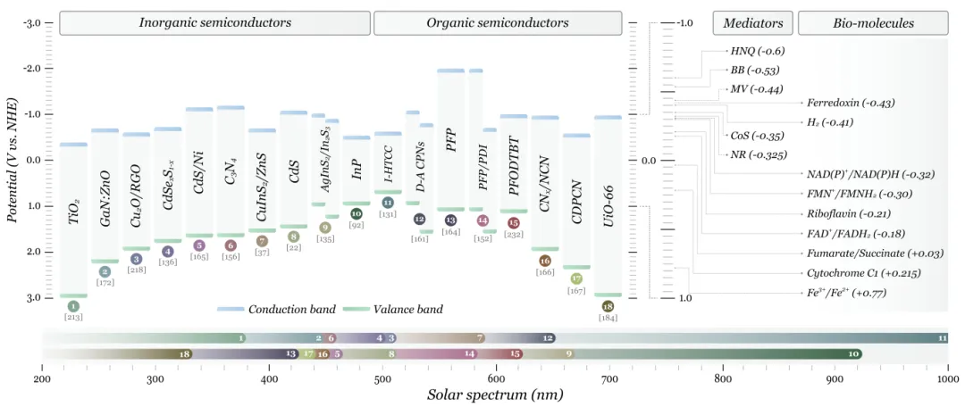 圖2. 典型NMHS當(dāng)中半導(dǎo)體納米材料的能帶結(jié)構(gòu)。