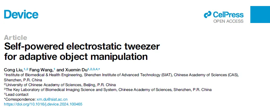 Device?|?自供能靜電鑷實現(xiàn)高度靈活與適應(yīng)性物體操控