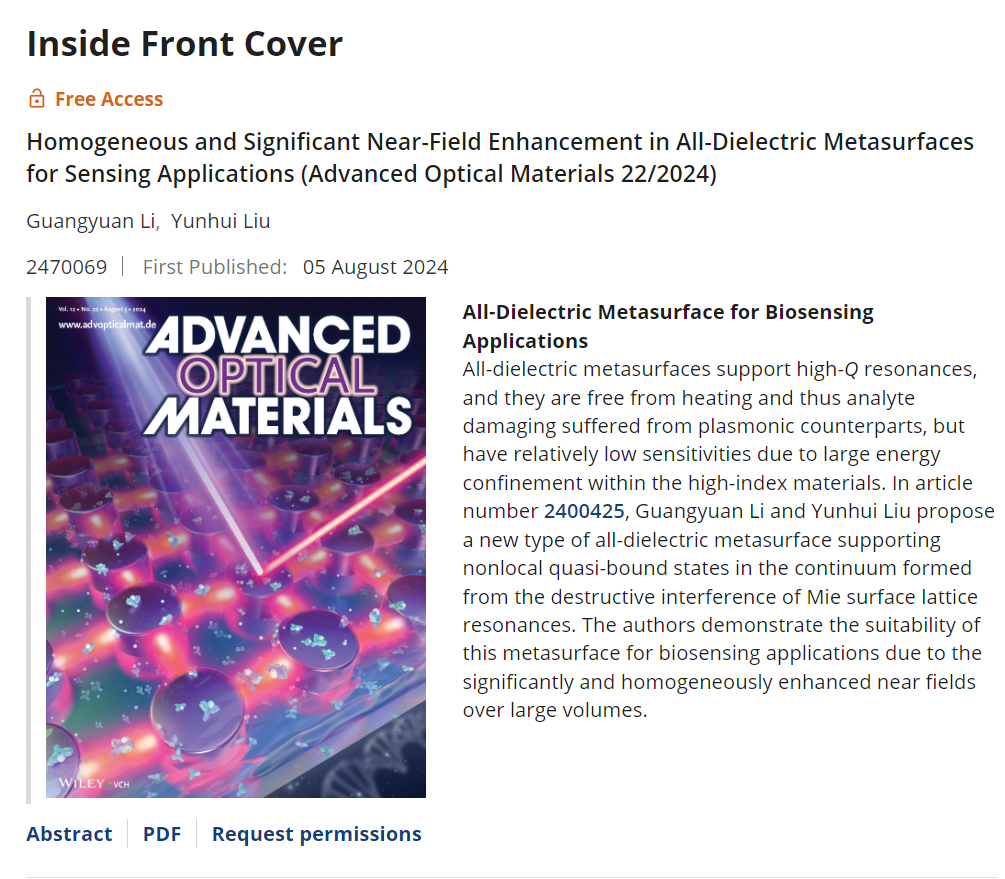 Advanced Optical Materials |?全介質(zhì)超表面近場增強新突破--非局域準(zhǔn)束縛態(tài)提升生物傳感性能
