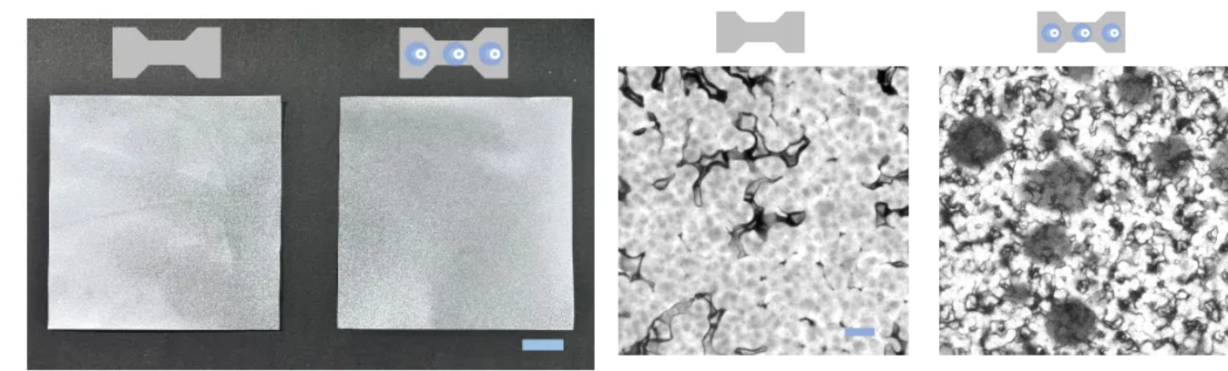 圖2. 普通PCL塑料和“活”塑料的宏觀、微觀照片