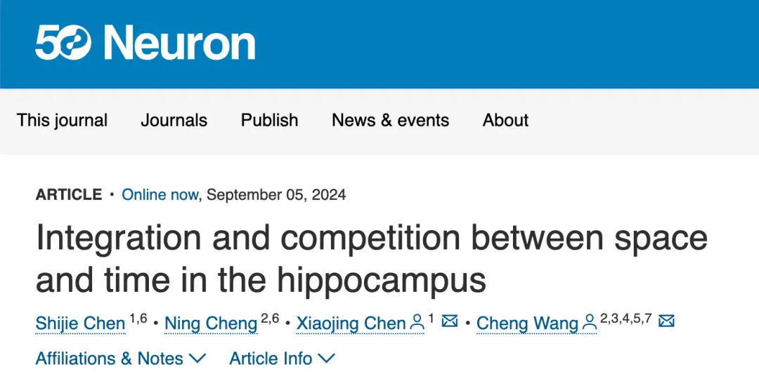 Neuron | 王成團隊等聯(lián)合揭示海馬編碼時空信息機制