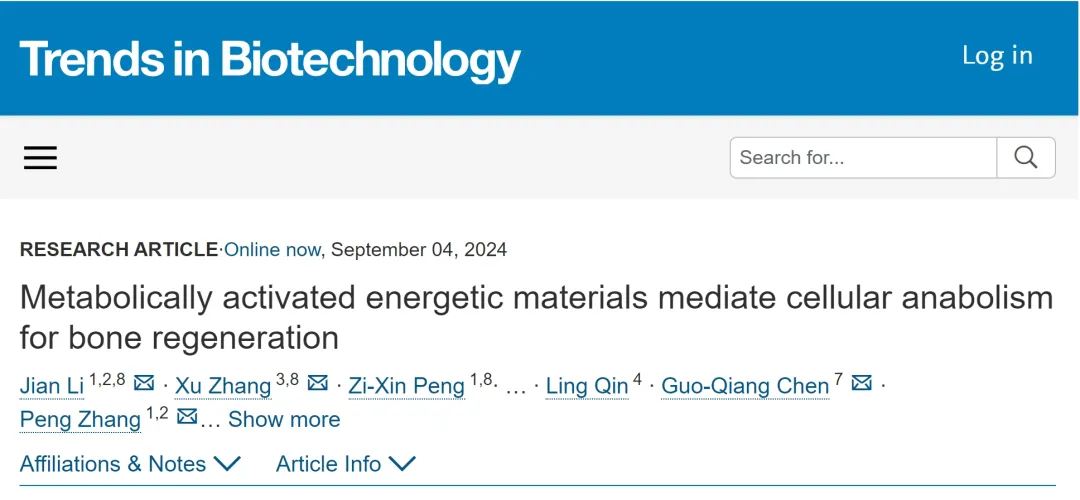 9月5日,中國(guó)科學(xué)院深圳先進(jìn)技術(shù)研究院(以下簡(jiǎn)稱“深圳先進(jìn)院”)研究員張鵬團(tuán)隊(duì),聯(lián)合清華大學(xué)陳國(guó)強(qiáng)教授團(tuán)隊(duì),以及北京大學(xué)口腔醫(yī)院張旭助理教授團(tuán)隊(duì)在Cell Press出版社旗下期刊Trends in Biotechnology上在線發(fā)表題為“Metabolically activated energetic materials mediate cellular anabolism for bone regeneration”的研究成果。