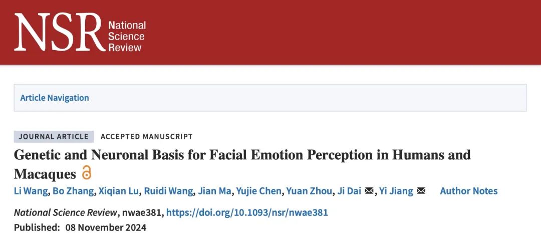 近日,中國科學院深圳先進技術(shù)研究院(簡稱“深圳先進院”)腦認知與腦疾病研究所/深港腦科學創(chuàng)新研究院戴輯團隊,聯(lián)合中國科學院心理研究所蔣毅團隊,在National Science Review在線發(fā)表了題為“Genetic and Neuronal Basis for Facial Emotion Perception in Humans and Macaques”的研究論文。該研究通過人類雙生子設計,利用行為、核磁共振成像(fMRI),結(jié)合獼猴在體電生理記錄,跨物種地研究了面部情緒感知的遺傳性和神經(jīng)基礎,深化了對情緒感知雙通道模型的理解,并闡明了靈長類情緒腦的起源及其功能發(fā)展。