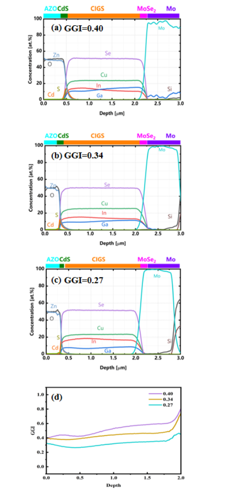 (c)CIGS雙分級(jí)設(shè)計(jì),(d)CIGS平帶設(shè)計(jì)。