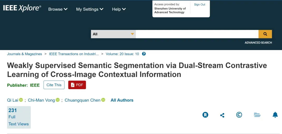 相關(guān)成果在期刊IEEE Transactions on Industrial Informatics上以“Weakly-supervised Semantic Segmentation via Dual-stream Contrastive Learning of Cross-image Contextual Information”為題,在期刊Expert Systems With Applications上以“Hybrid Multiple Instance Learning Network for Weakly Supervised Medical Image Classification and Localization”為題分別進(jìn)行了發(fā)表。