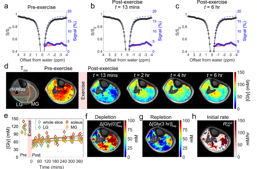 [2]?Jue,T.,Rothman,D. L.,Shulman,G. I.,Tavitian,B. A.,DeFronzo,R. A.,& Shulman,R. G. (1989). Direct observation of glycogen synthesis in human muscle with 13C NMR.?Proceedings of the National Academy of Sciences of the United States of America,?86(12),4489–4491.?[3]?Price,T. B.,Rothman,D. L.,Taylor,R.,Avison,M. J.,Shulman,G. I.,& Shulman,R. G. (1994). Human muscle glycogen resynthesis after exercise: insulin-dependent and -independent phases.?Journal of applied physiology (Bethesda,Md.:1985),?76(1),104–111.[4]?Hargreaves,M.,& Spriet,L. L. (2020). Skeletal muscle energy metabolism during exercise.?Nature metabolism,?2(9),817–828.[5]?Vigh-Larsen,J. F.,?rtenblad,N.,Spriet,L. L.,Overgaard,K.,& Mohr,M. (2021). Muscle Glycogen Metabolism and High-Intensity Exercise Performance: A Narrative Review.?Sports medicine(Auckland,N.Z.),?51(9),1855–1874.?[6]?Schytz,C. T.,?rtenblad,N.,Gejl,K. D.,& Nielsen,J. (2024). Differential utilisation of subcellular skeletal muscle glycogen pools: a comparative analysis between 1 and 15?min of maximal exercise.?The Journal of physiology,?602(8),1681–1702.?[7]?Price,T. B.,Rothman,D. L.,& Shulman,R. G. (1999). NMR of glycogen in exercise.?The Proceedings of the Nutrition Society,?58(4),851–859.?[8]?Zhou,Y.,Bie,C.,van Zijl,P. C. M.,& Yadav,N. N. (2023). The relayed nuclear Overhauser effect in magnetization transfer and chemical exchange saturation transfer MRI.?NMR in biomedicine,?36(6),e4778.?