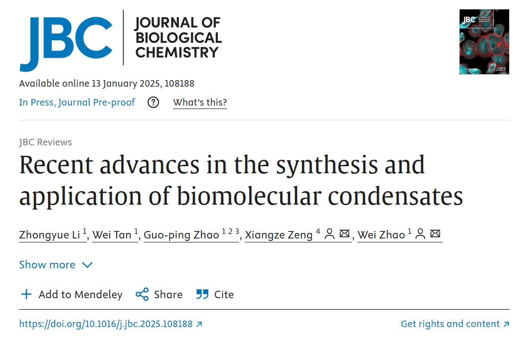 Journal of Biological Chemistry | 生物大分子凝聚物的合成與應(yīng)用研究進(jìn)展
