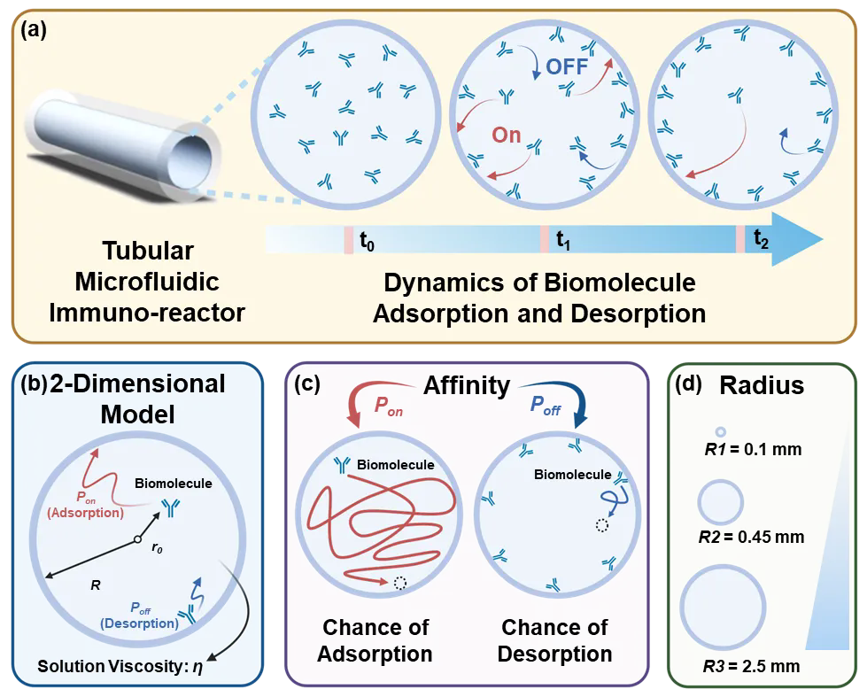 尤其在高靈敏度的生物標(biāo)志物檢測(cè)中,傳統(tǒng)微流控系統(tǒng)常因抗體性能不足引發(fā)噪聲,導(dǎo)致假陽性率升高。針對(duì)這些問題,深圳先進(jìn)院研究團(tuán)隊(duì)通過建立管狀微流控免疫反應(yīng)器多影響因素耦合模型,揭示了"反應(yīng)器尺寸-反應(yīng)條件-分子探針性能"的三維協(xié)同機(jī)制,不僅為微流控生物傳感器件的設(shè)計(jì)提供了量化標(biāo)準(zhǔn),也為免疫分析抗體探針的開發(fā)提供了理論指導(dǎo),為突破生物傳感技術(shù)的性能瓶頸提供了新啟示。