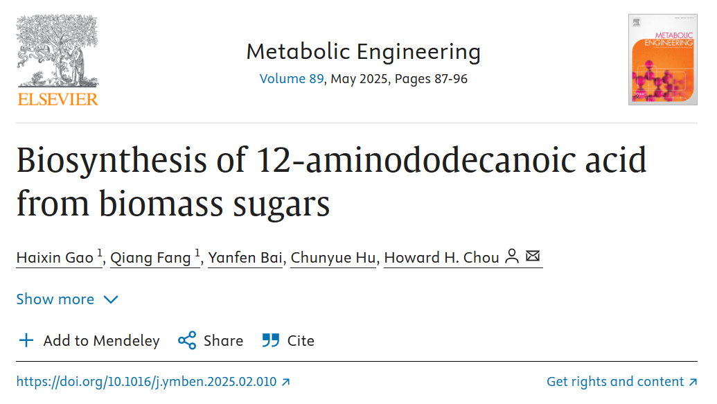 Metabolic Engineering | 利用生物質糖實現(xiàn)聚酰胺12的綠色合成