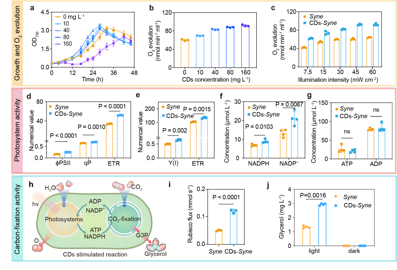 圖2:碳量子點材料提高了藍細菌的光合作用效率