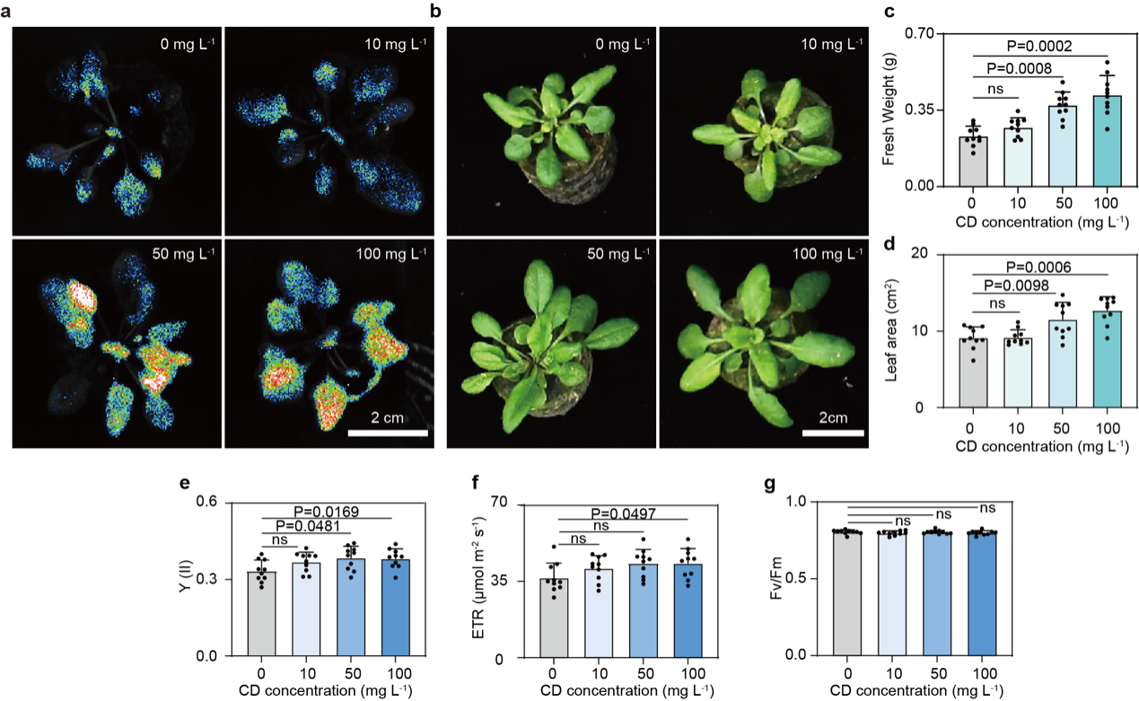 圖3:碳量子點材料提高了擬南芥的光合作用效率