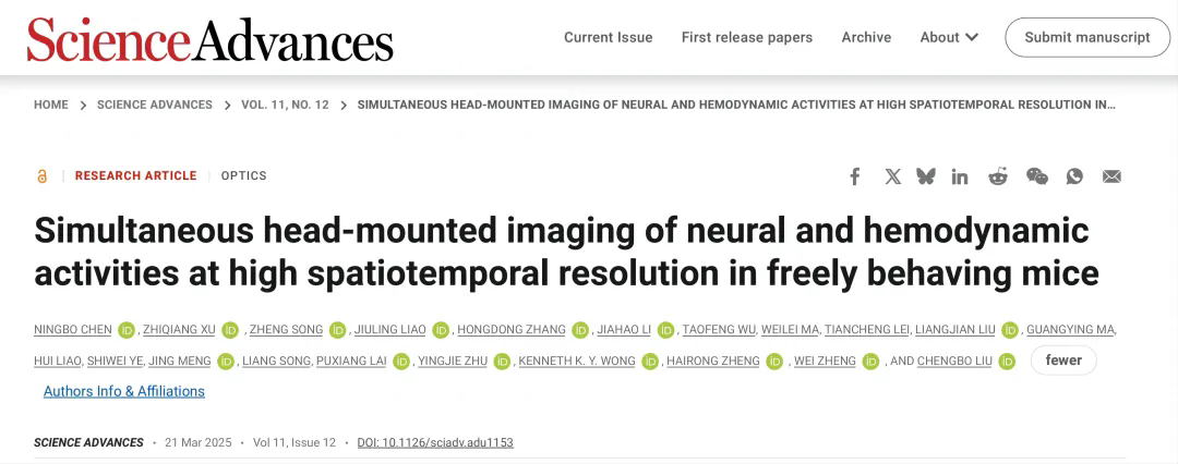 該項研究首次實現(xiàn)了對自由活動小鼠大腦神經(jīng)元活動與血液動力學的同步高時空分辨成像,為解析神經(jīng)血管耦合機制和開發(fā)新一代腦機接口技術(shù)提供了新思路。