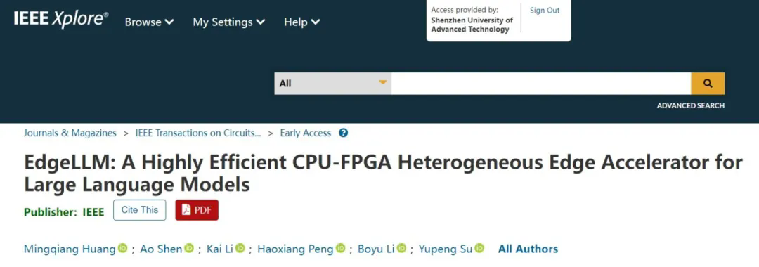 近日,中國(guó)科學(xué)院深圳先進(jìn)技術(shù)研究院醫(yī)學(xué)成像全國(guó)重點(diǎn)實(shí)驗(yàn)室、醫(yī)工所醫(yī)學(xué)人工智能研究中心黃明強(qiáng)團(tuán)隊(duì)在大模型AI芯片領(lǐng)域取得重要進(jìn)展,其研究成果在電路與系統(tǒng)領(lǐng)域頂級(jí)期刊IEEE Transactions on Circuits and Systems I: Regular Papers上在線發(fā)表,論文題目為"EdgeLLM: A Highly Efficient CPU-FPGA Heterogeneous Edge Accelerator for Large Language Models"。該研究成功攻克人工智能大語(yǔ)言模型(LLM)在資源受限邊緣設(shè)備部署的核心難題,為智能機(jī)器人、便攜設(shè)備等場(chǎng)景的實(shí)時(shí)AI應(yīng)用提供了創(chuàng)新解決方案。