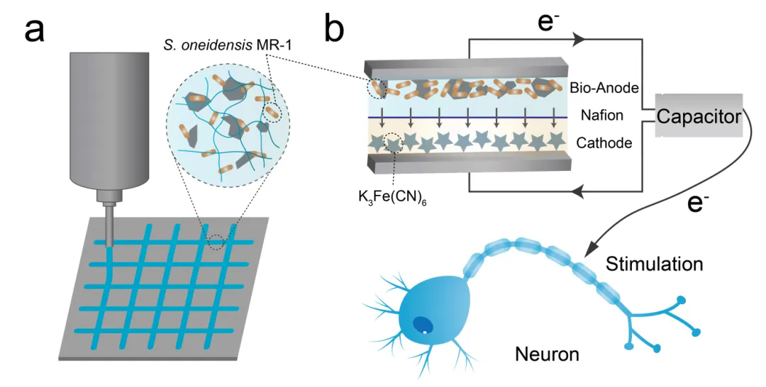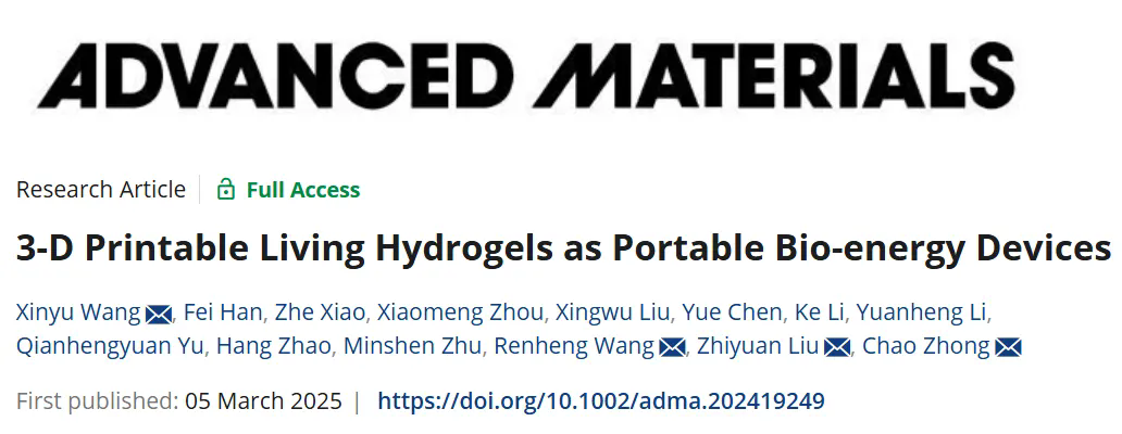 Advanced Materials 封面文章 | 開發(fā)3D打印活體水凝膠微型便攜式生物電池用于精準(zhǔn)神經(jīng)刺激