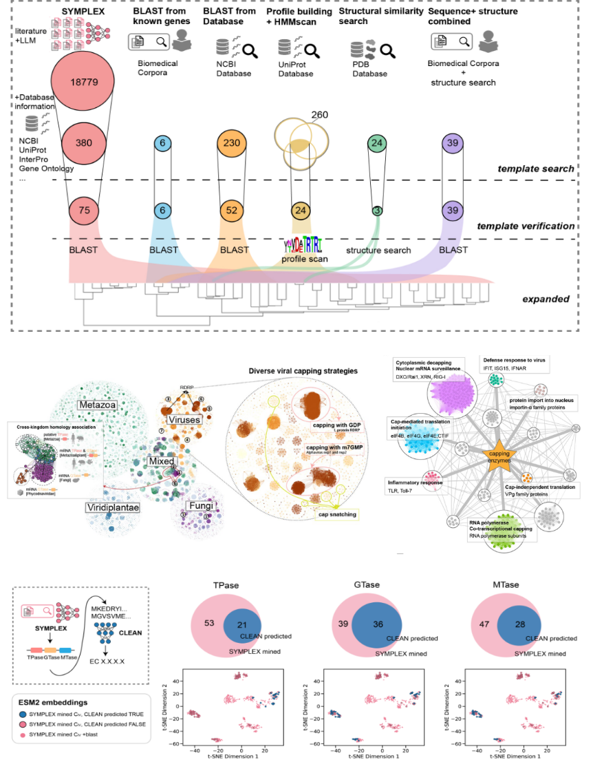 4月9日,中國科學院深圳先進技術(shù)研究院定量合成生物學全國重點實驗室、合成生物學研究所婁春波團隊與北京大學定量生物學中心錢瓏團隊合作在國際學術(shù)期刊Science Advances上發(fā)表題為"Discovery of Diverse and High-quality mRNA Capping Enzymes through a Language Model-enabled Platform"的研究論文,報道了全球首個面向合成生物學元件挖掘與生物制造應(yīng)用的大語言模型——"SYMPLEX",并將SYMPLEX模型應(yīng)用于mRNA加帽酶基因的挖掘,展示了大語言模型賦能生物制造的巨大潛力。