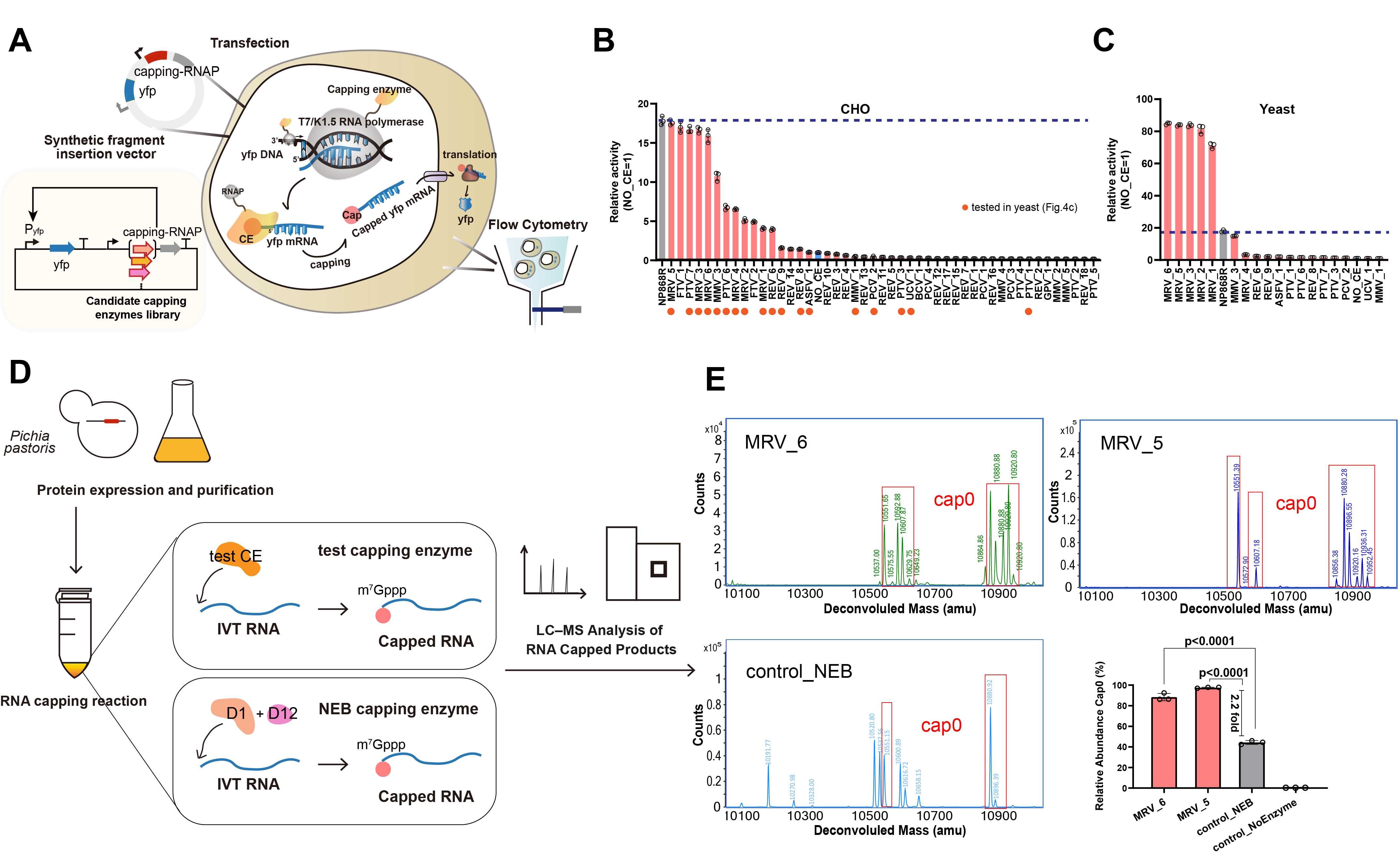 圖3. 候選加帽酶在細胞體系和體外轉(zhuǎn)錄體系中表現(xiàn)出跨物種、跨體系的高加帽效率
